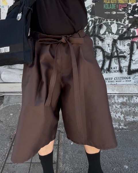 Made from breathable cotton twill fabric. Creates box shape. 2 pleats per side, 4 front pleats for a cool flowing aesthetic.